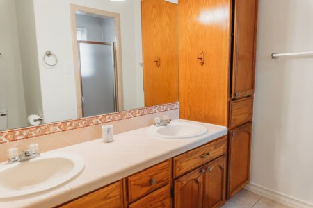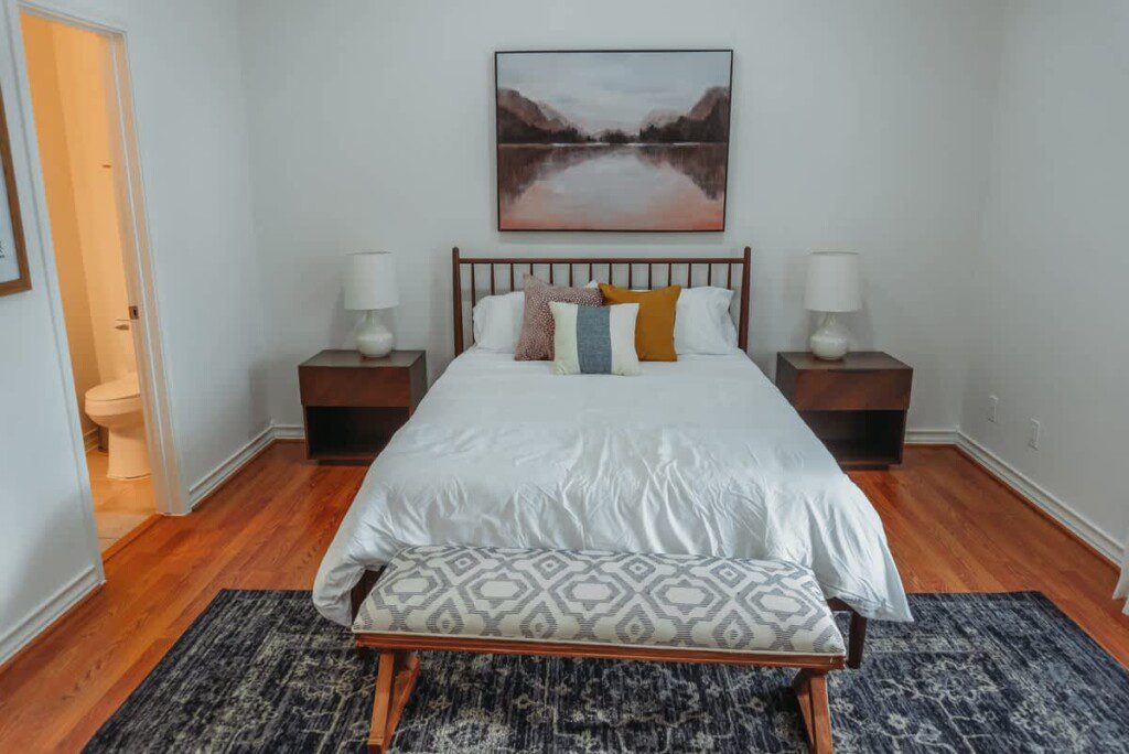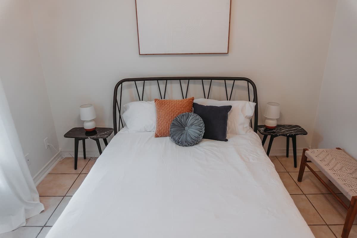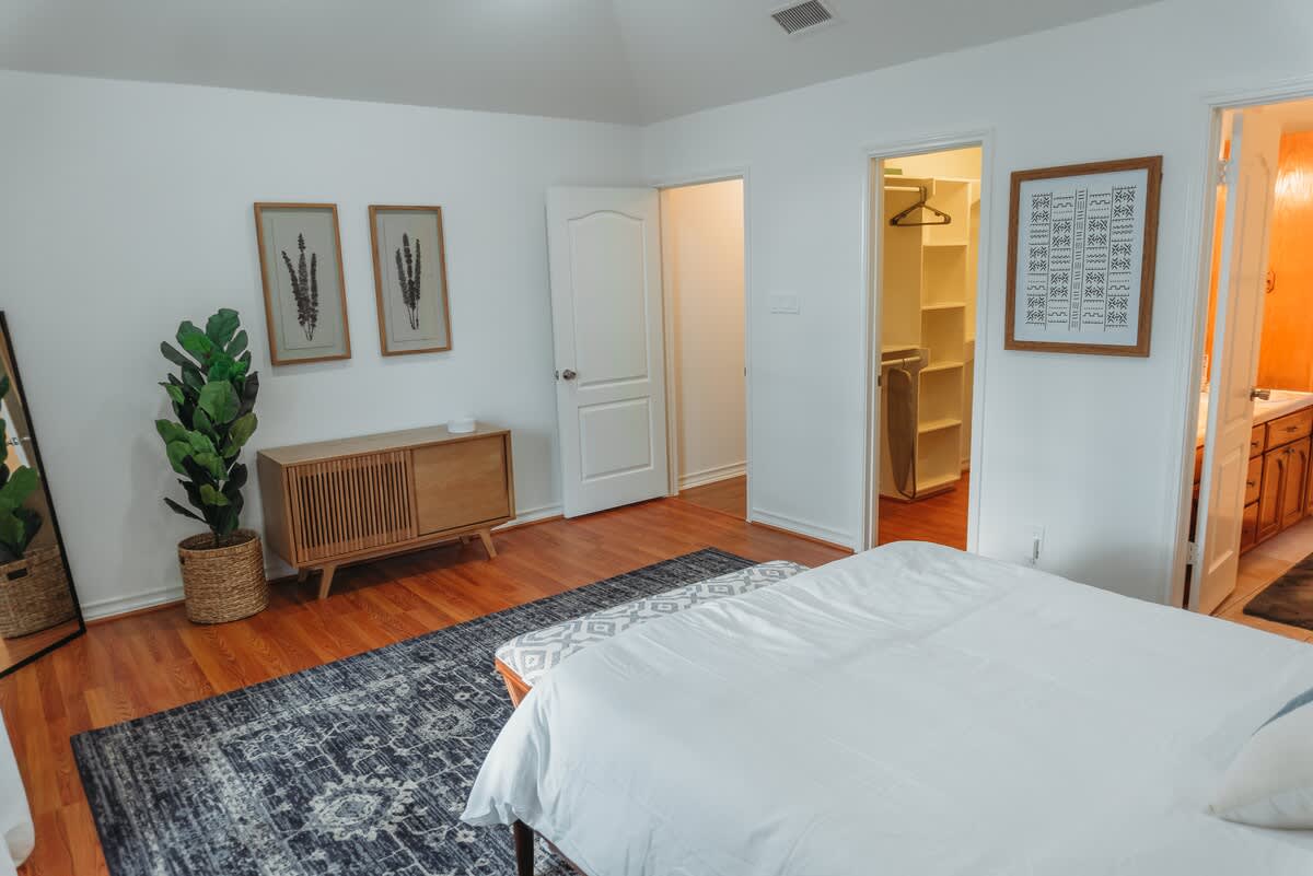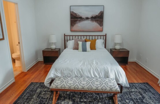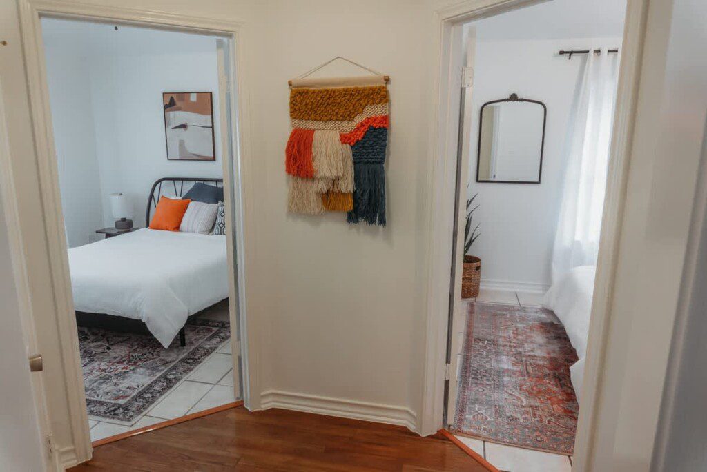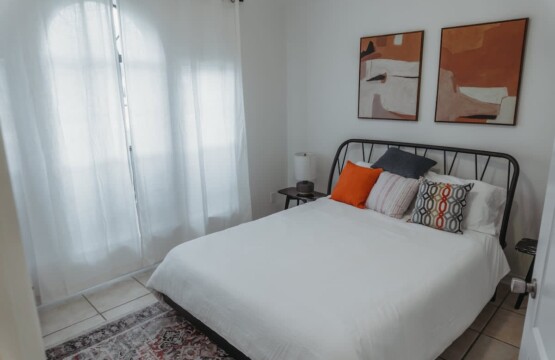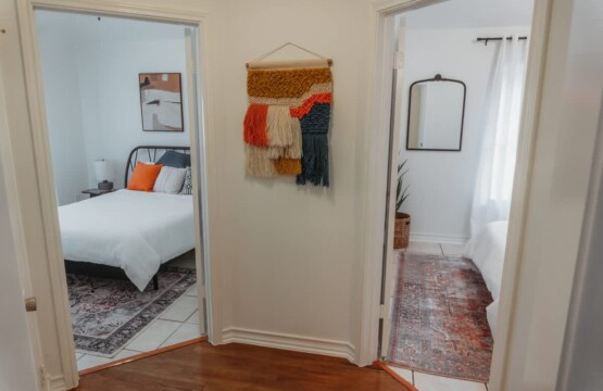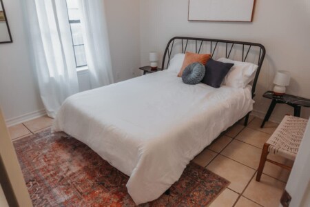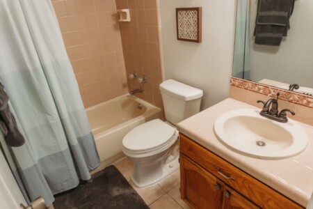 Inside you’ll find three bedrooms, each with a queen-sized bed. The master bedroom has a private bathroom. Bedrooms 2 and 3 share the second bathroom.