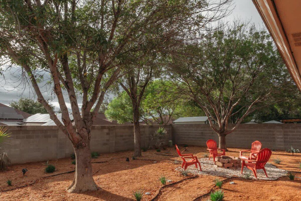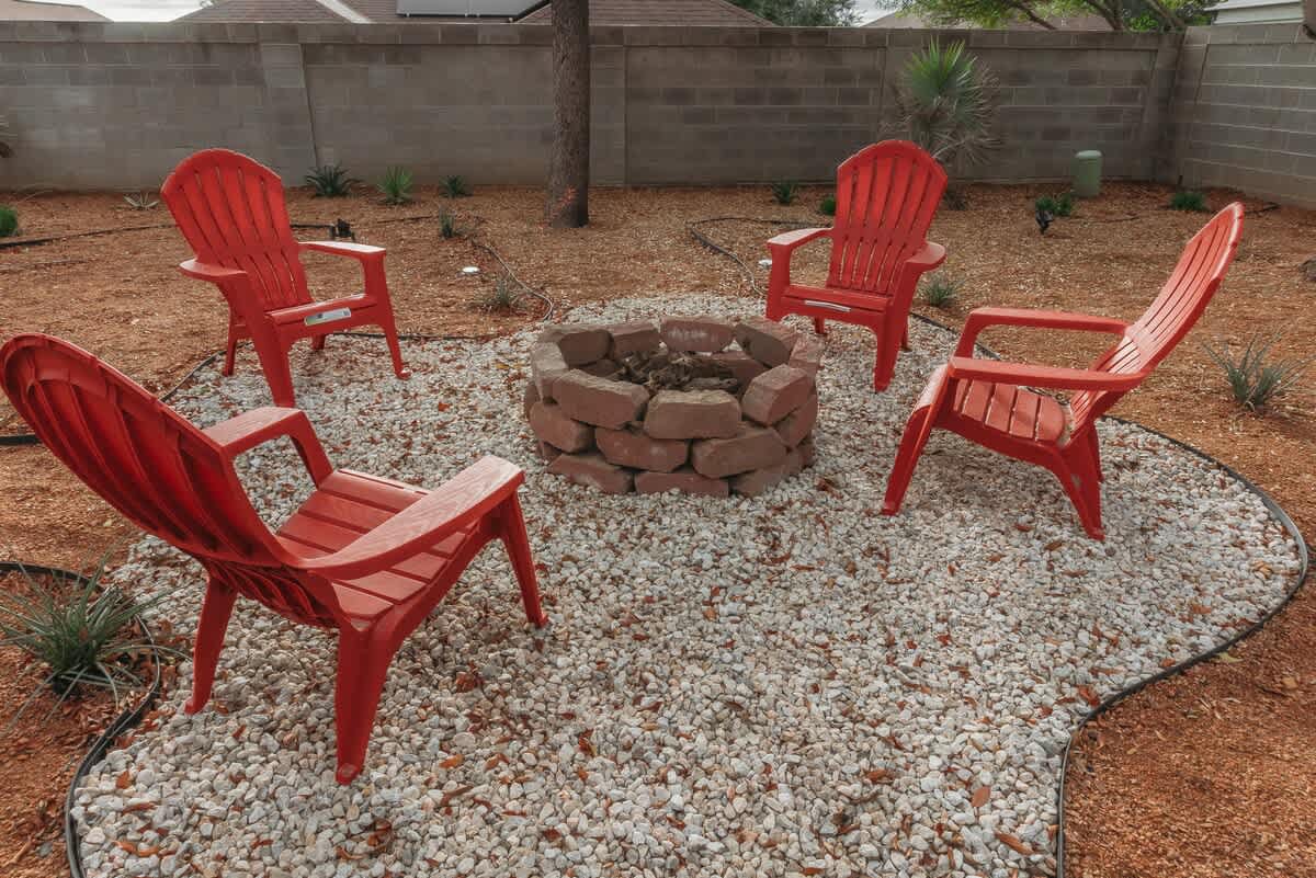 Enjoy the spacious outdoor area and relax in a chair by the fire pit.